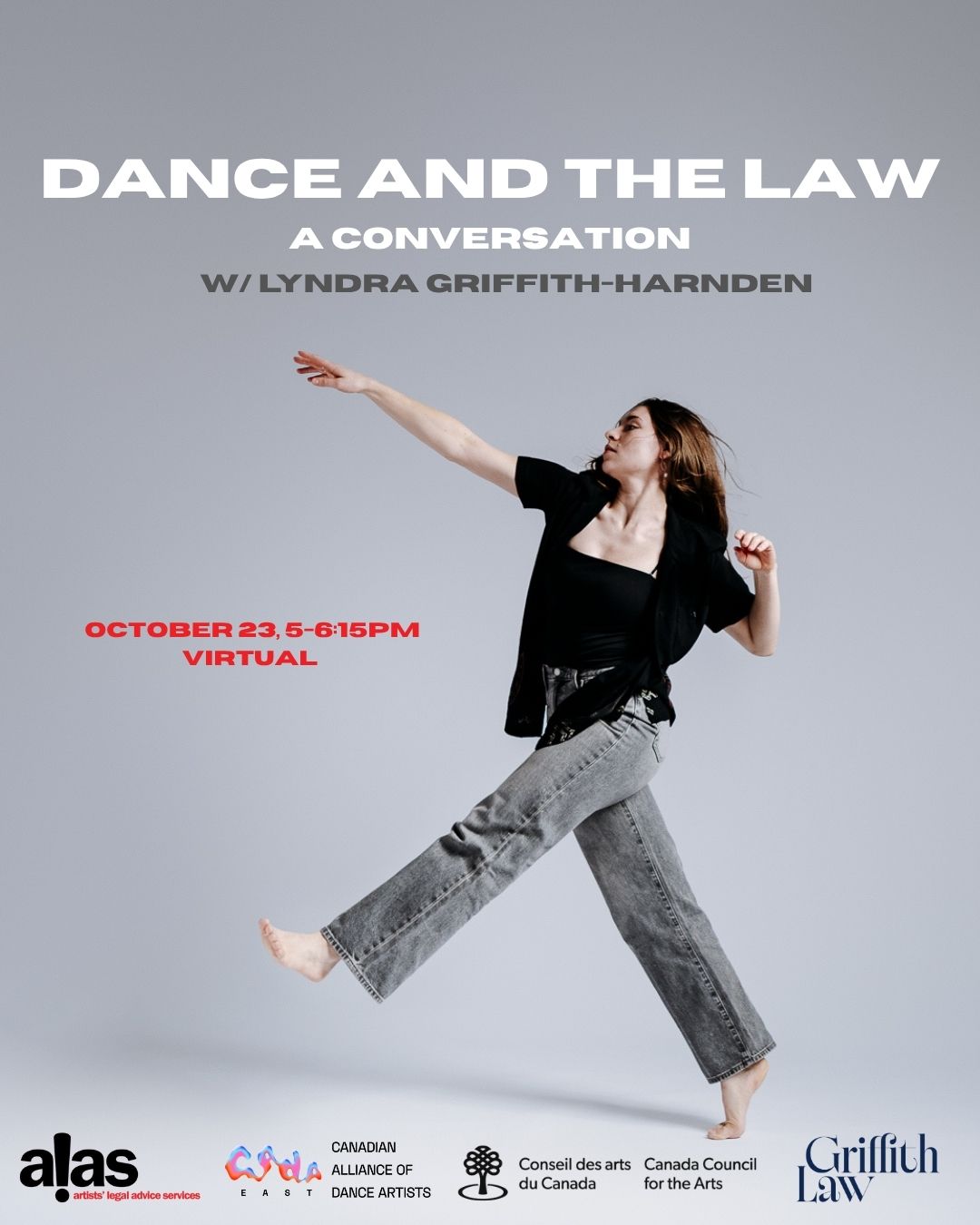 Join us with entertainment lawyer Lyndra Griffith-Harnden for an open conversation around common legal issues and questions faced by independent dance artists. From the creation and negotiation of contracts, to navigating disputes and understanding copyright as it relates to original works of choreography, the session is intended to provide dancers a relaxed opportunity to engage with both their peers and a legal professional, in order to understand and advocate for their legal rights and to more confidently navigate situations that may arise over the course of their artistic careers. Participants are encouraged to send specific questions or topics of interests that they may have in advance, during registration.